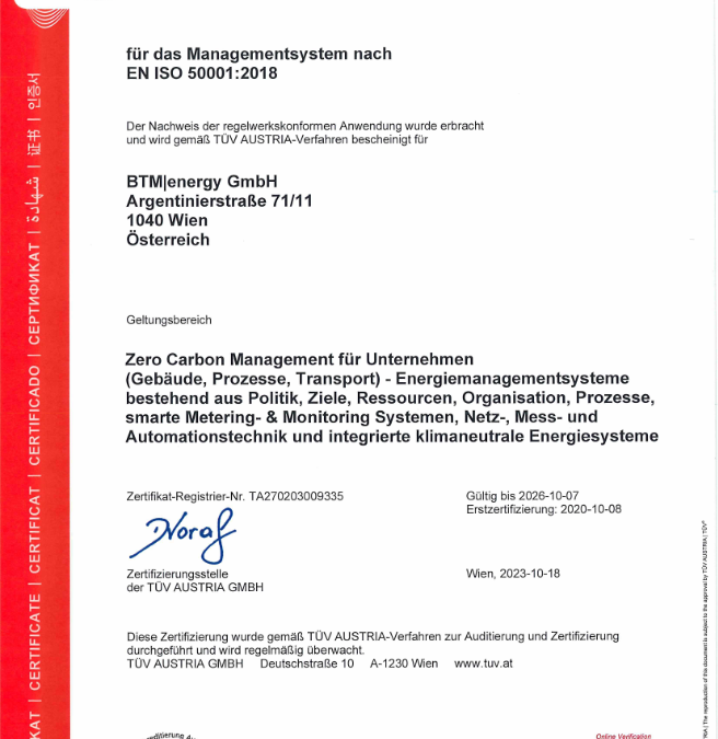 Auch diesen September haben wir wieder unsere Re-Zertifizierung nach ISO50001, mit einem Überwachungsaudit erfolgreich abgeschlossen. Herzlichen Dank an unseren Kollegen Dominik, der, als unser Energiemanager, den Audit und die Rezertifizierung durchgeführt hat.